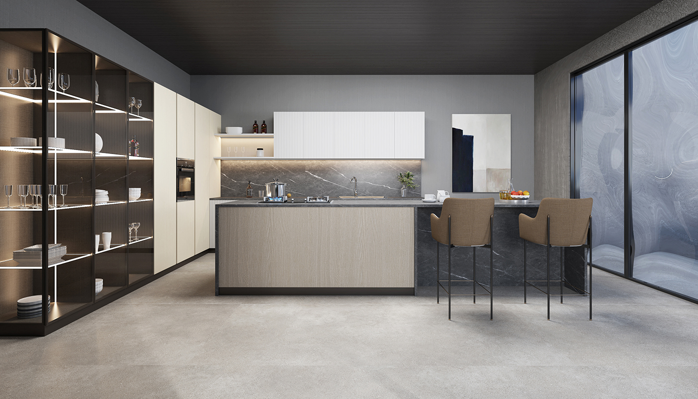 加入现代微水泥元素,将质感与建筑融合
