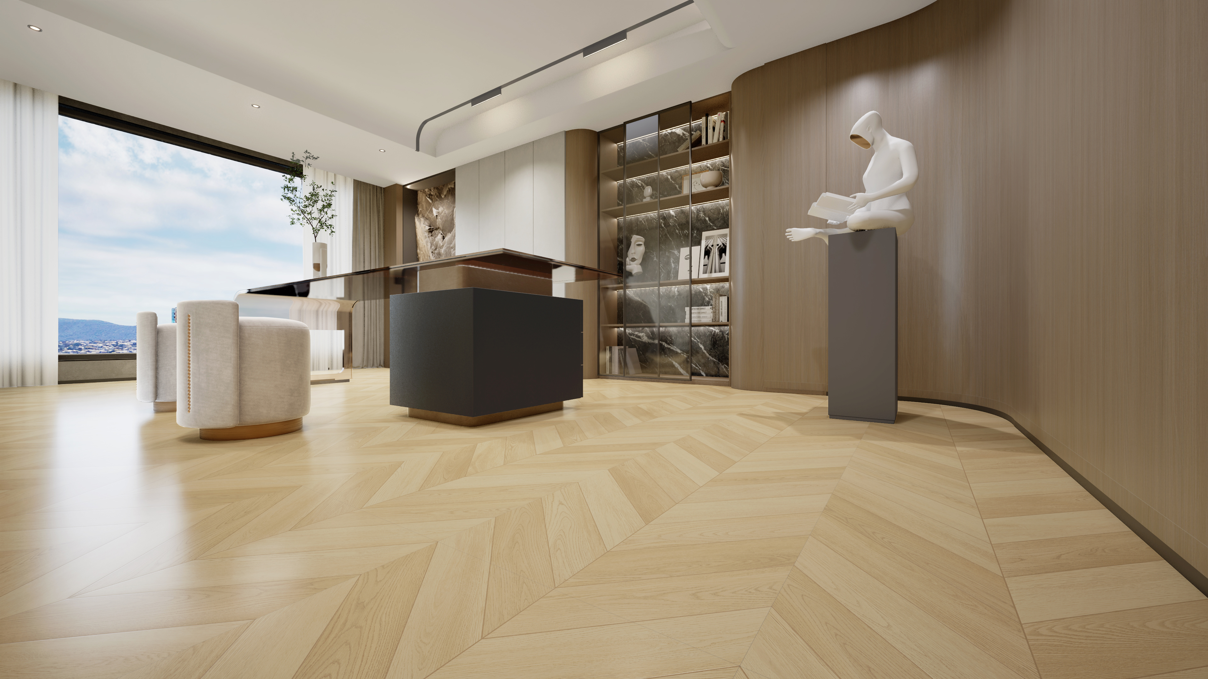 45°精密斜切的鱼骨纹路,锐角与延展的纹理形成独特的视觉韵律